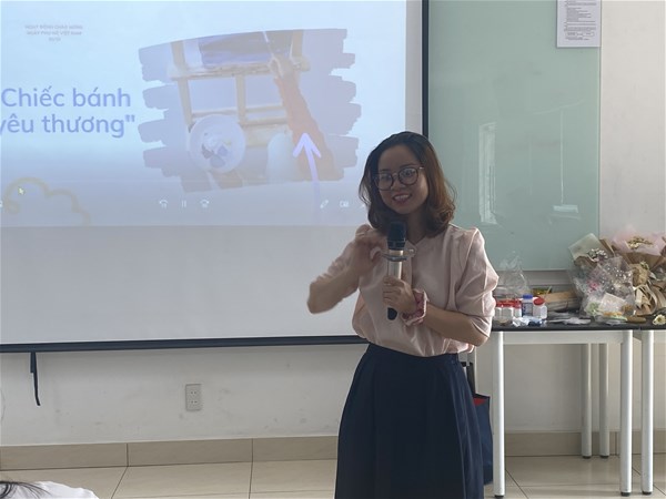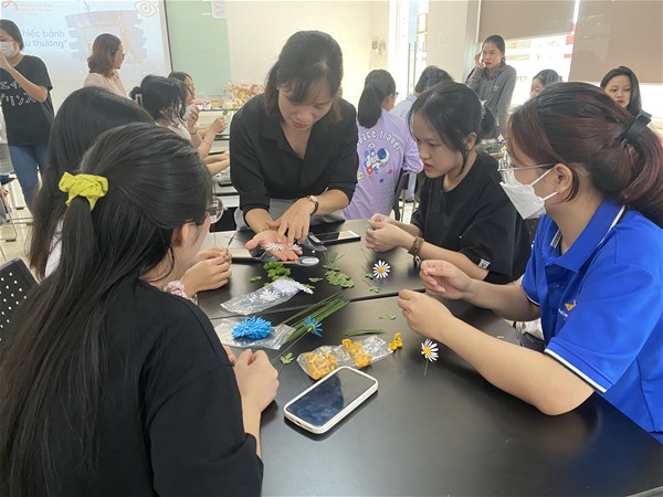 Trong chương trình, Chị Nguyễn Thị Thanh Hường và Chị Nguyễn Thùy Dung đến từ Mây Coffee đã hướng dẫn các bạn sinh viên làm hoa giấy, hướng dẫn bó thành những bó hoa tươi tắn, xinh xắn, hướng dẫn làm những chiếc bánh quy. Bên cạnh đó, hai chị cũng chia sẻ những kinh nghiệm tạo nên những món quà nhỏ xinh xắn, dễ thương dành tặng cho người thân. Sau chương trình, BTC đã dành tặng những phần quà ngọt ngào là chiếc bánh quy đáng yêu cho các bạn sinh viên tham dự.