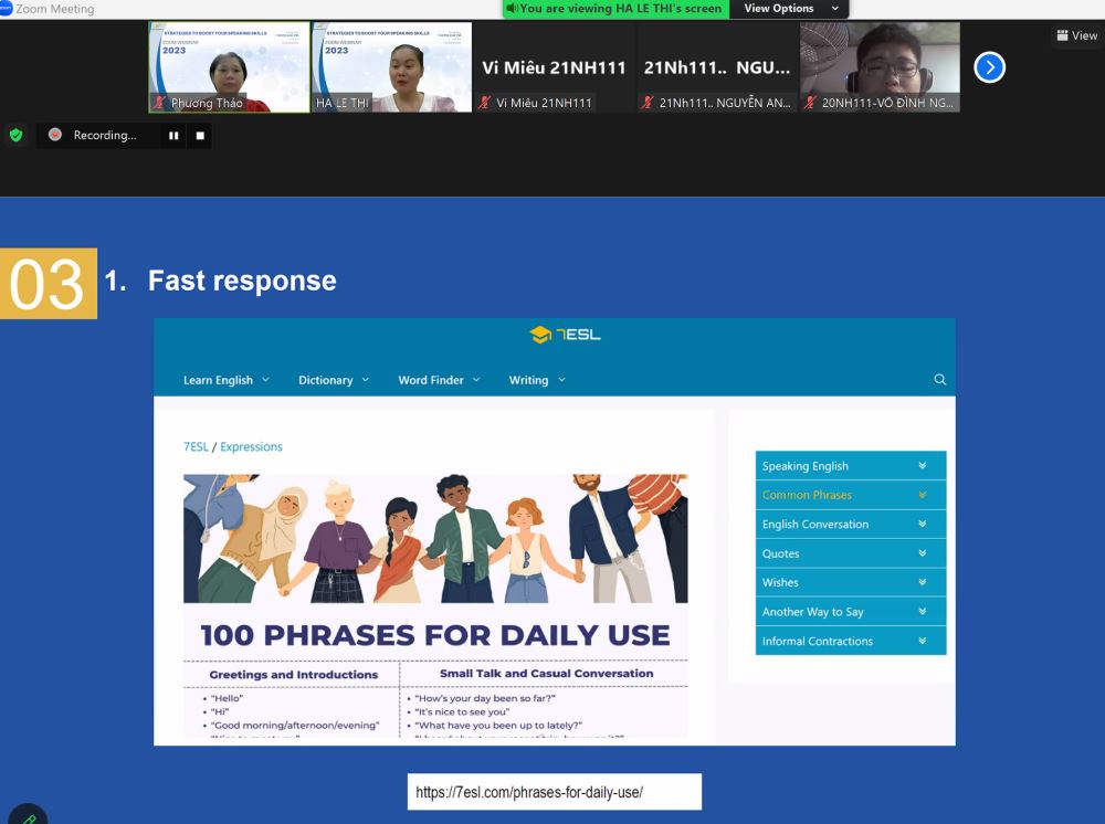 Sau buổi hội thảo, những phản hồi tích cực đã được gửi đến từ các thành viên CLB và người tham gia. Họ đã biểu đạt sự cảm kích với nội dung phong phú và chất lượng của buổi sinh hoạt trực tuyến này. Các thành viên của CLB English Club và người tham gia khác đều thấy rằng buổi hội thảo đã cung cấp cho họ những kiến thức và kỹ năng mới để phát triển khả năng giao tiếp tiếng Anh của mình.