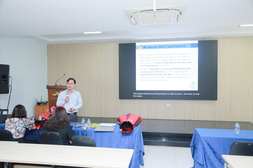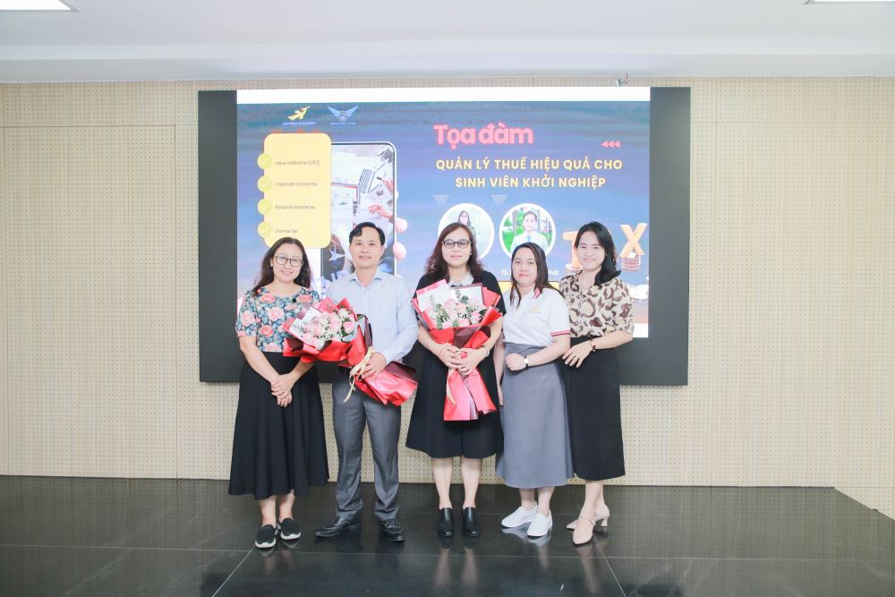 Buổi tọa đàm có sự tham gia của hai diễn giả là TS. Đào Tuyết Lan và TS. Nguyễn Quốc Nhất – những giảng viên giàu kinh nghiệm và tâm huyết trong lĩnh vực tài chính – kế toán và quản trị thuế. Với cách trình bày dễ hiểu, gần gũi và sinh động, các diễn giả đã mang đến cho sinh viên nhiều kiến thức bổ ích và thiết thực xoay quanh các loại thuế quan trọng mà một doanh nghiệp khởi nghiệp cần nắm rõ như: thuế giá trị gia tăng (VAT), thuế thu nhập doanh nghiệp, thuế thu nhập cá nhân và thuế môn bài.