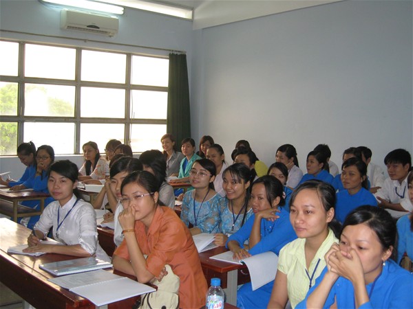 Nhiều Sv tham gia báo cáo đang chăm chú theo dõi buổi báo cáo lao động thực tế