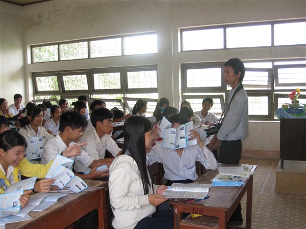 Thầy Nguyễn Văn Dũng đang tư vấn cho các em học sinh lớp 12