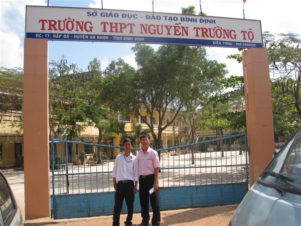 Ts. Nguyễn Văn Tân chụp hình lưu niệm với thầy Minh (người thứ 2 bên trái sang) giáo viên trường THPT An Nhơn 1