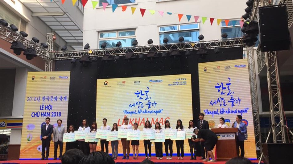 Lễ hội Hangeul năm nay được tổ chức tại Trường Đại học Công Nghệ - TP.HCM, vào chủ nhật ngày 14 tháng 10 năm 2018 vừa qua với nhiều hoạt động sôi động và đa dạng như: Trò chơi rung chuông vàng, trưng bày các gian hàng thủ công, mỹ nghệ Hàn Quốc, nhảy Flash mob, trang trí trại, gala âm nhạc, thiết kế áo đồng phục, trải nghiệm trò chơi dân gian… được bố trí phù hợp từ lúc bắt đầu cho đến khi kết thúc. Sự kiện đã thu hút đươc sự tham gia của nhiều trường Đại học, Cao đẳng có đào tạo chuyên ngành tiếng Hàn Quốc trong nội thành TP.HCM và các khu vực lân cận như: Đồng Nai, Vũng Tàu, Đà Lạt…