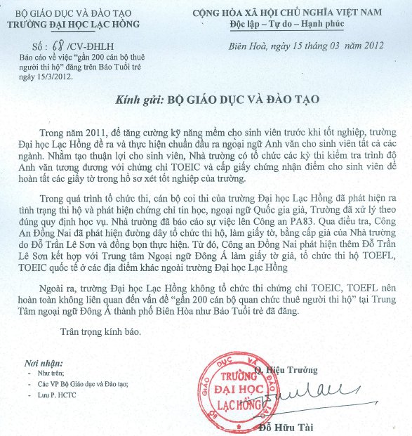 Báo cáo gửi Bộ Giáo dục & Đào tạo về thông tin trên báo Tuổi Trẻ