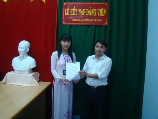 Đến dự lễ kết nạp, có Đ/c Nguyễn Trùng Phương – Bí thư Đảng ủy trường; về phía chi bộ có Đ/c Thái Quang Tâm – Bí thư và toàn thể đảng viên chi bộ.