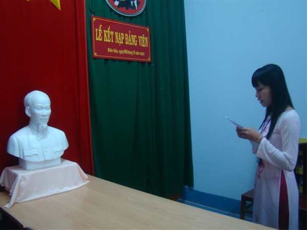 Quần chúng Nguyễn Ngọc Mai Thanh Mỹ tuyên thệ trước khi kết nạp Đảng
