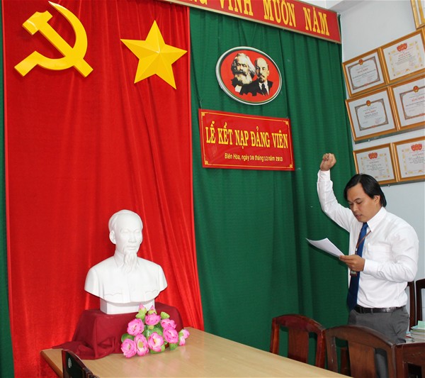 Trong không khí vui tươi, phấn khởi, với sự có mặt của toàn thể đảng viên trong chi bộ, buổi lễ diễn ra trong không khí trang nghiêm, ấm cúng. Ngay sau khi nhận quyết định, đảng viên mới Nguyễn Hoàng Hải tuyên thệ trung thành với lí tưởng và mục tiêu cách mạng của Đảng, thực hiện nghiêm túc các nhiệm vụ của người đảng viên, đóng góp tích cực vào việc xây dựng Đảng, xứng đáng là đảng viên của Đảng cộng sản Việt Nam.