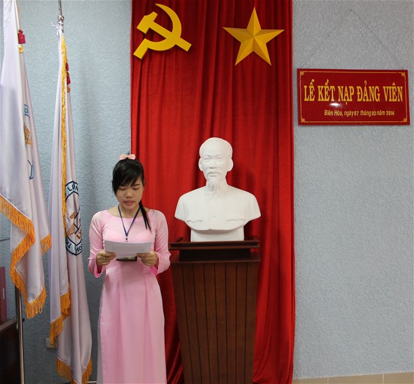 Trong không khí vui tươi, phấn khởi, với sự có mặt của toàn thể đảng viên trong chi bộ, buổi lễ diễn ra trong không khí trang nghiêm, ấm cúng. Ngay sau khi nhận quyết định, đảng viên mới Nguyễn Thị Hồng Nhung tuyên thệ trung thành với lí tưởng và mục tiêu cách mạng của Đảng, thực hiện nghiêm túc các nhiệm vụ của người đảng viên, đóng góp tích cực vào việc xây dựng Đảng, xứng đáng là đảng viên Đảng cộng sản Việt Nam.