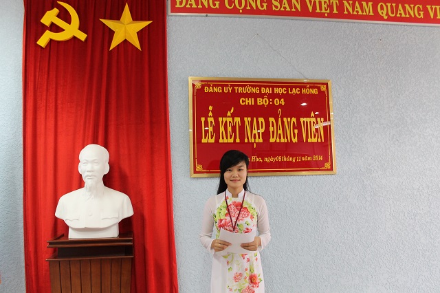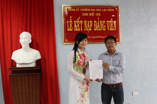 Được sự thống nhất của Ban thường vụ Đảng ủy Khối, Đảng ủy trường Đại học Lạc Hồng, vào lúc 10h30 ngày 04 tháng 11 năm 2014 tại phòng họp CS1 trường Đại học Lạc Hồng, Chi bộ 4 đã tiến hành tổ chức lễ kết nạp Đảng viên cho quần chúng xuất sắc Trần Thị Thanh vào Đảng Cộng sản Việt Nam; Đến dự buổi lễ kết nạp có Đ/c Nguyễn Trùng Phương – Bí thư Đảng ủy trường cùng toàn thể Đảng viên trong Chi bộ.