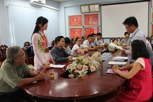 Hình 1: Đồng chí Trần Trung Kiên - Phó bí thư chi bộ đọc quyết định kết nạp Đảng viên.