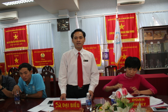 Hình 4: Đ/c Lê Sơn Quang - UV.BTV Đảng ủy trường phát biểu tại đại hội