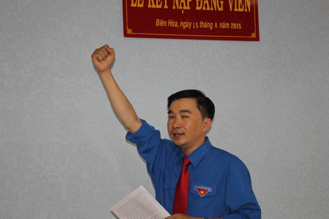 Hình 3: Đ/c Phan Thế Anh đọc tuyên thệ tại buổi lễ kết nạp đảng viên