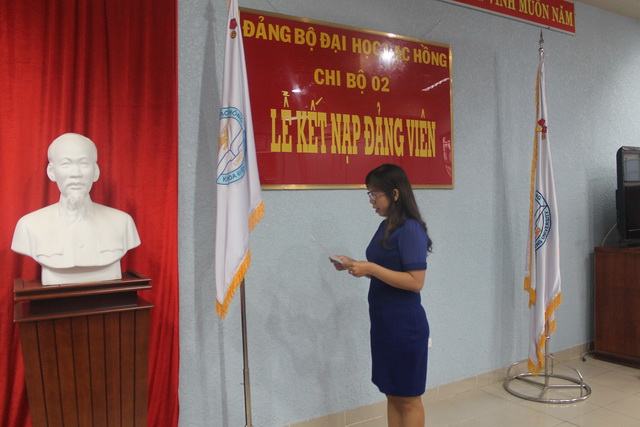 Được sự đồng ý của Đảng ủy khối các cơ quan tỉnh Đồng Nai, Ban Thường vụ Đảng ủy trường; ngày 24/6/2016, tại phòng họp trường Đại học Lạc Hồng (cơ sở 1), Chi bộ 2 đã tổ chức Lễ kết nạp đảng viên cho quần chúng Trần Thị Quốc Hoa vào Đảng Cộng sản Việt Nam, đến dự buổi lễ kết nạp có Đ/c Lê Sơn Quang – UVTV Đảng ủy trường cùng toàn thể đảng viên trong Chi bộ 2.