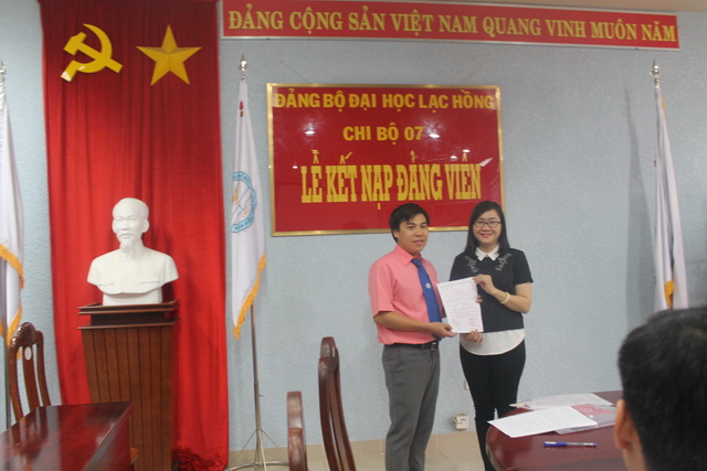 Được sự đồng ý của Đảng ủy khối các cơ quan tỉnh Đồng Nai, Ban Thường vụ Đảng ủy trường; ngày 24/6/2016, tại phòng họp trường Đại học Lạc Hồng (cơ sở 1), Chi bộ 7 đã tổ chức Lễ kết nạp đảng viên cho quần chúng Đoàn Việt Hùng vào Đảng Cộng sản Việt Nam, đến dự buổi lễ kết nạp có Đ/c Lê Sơn Quang – UVTV Đảng ủy trường cùng toàn thể đảng viên trong Chi bộ 7.