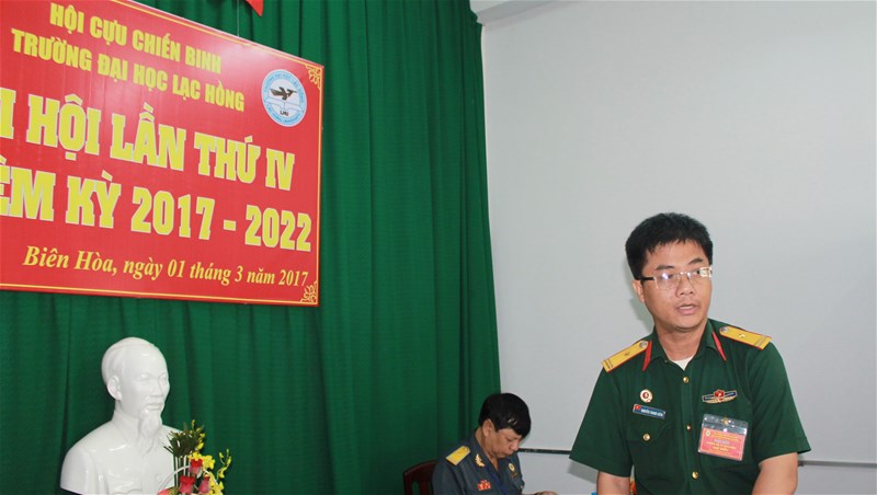 Thay mặt Đảng ủy đồng chí Nguyễn Trùng Phương - Bí thư Đảng ủy Nhà trường tới dự Đại hội và phát biểu chỉ đạo Đại hội. Đồng chí bày tỏ sự nhất trí với báo cáo tổng kết hoạt động Hội, một lần nữa đánh giá cao những đóng góp không nhỏ của Hội CCB trường Đại học Lạc Hồng trong những hoạt động nổi bật và thành tích của Nhà trường. Về phương hướng hoạt động nhiệm kỳ 2017-2022, đồng chí nhấn mạnh những điểm cần lưu  ý, đó là: củng cố tổ chức của Hội, chú trọng việc phát triển hội viên (như đối tượng là sinh viên đã hoàn thành nghĩa vụ quân sự) nhằm xây dựng lực lượng nòng cốt trong sinh viên; giữ gìn khối đoàn kết, nhất trí trong Hội, trong các đơn vị; tăng cường giáo dục tư tưởng, chính trị, tuyên truyền lý tưởng cách mạng trong hội viên, cơ quan, đơn vị và đặc biệt là thế hệ trẻ Nhà trường; luôn đi đầu, gương mẫu thực hiện các nghị quyết, chỉ thị của Đảng, Nhà nước, trong các hoạt động, phong trào của Trường.