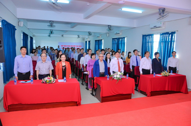 Hình 1: Đại biểu thực hiện nghi thức chào cờ trước khi Hội nghị bắt đầu