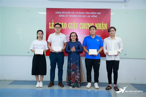 Đ/c Nguyễn Thị Thu Lan - Phó Bí thư Đảng ủy, Phó Hiệu trưởng trao giấy chứng nhận