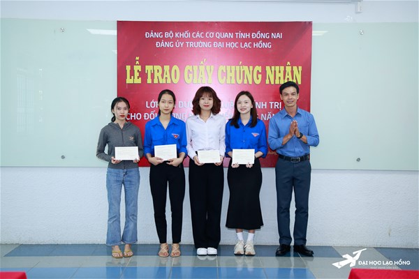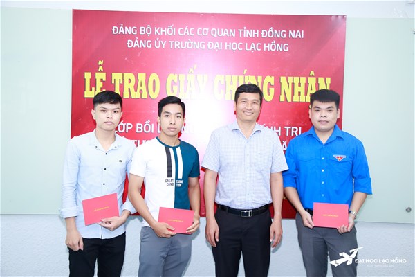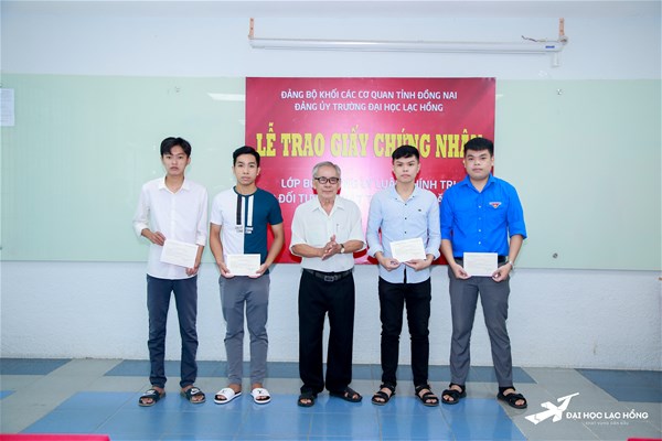 Sáng ngày 17/6/2022, Tại phòng E202, cơ sở 3, Đảng uỷ trường đã tổ chức Lễ trao Giấy chứng nhận Lớp bồi dưỡng lý luận chính trị dành cho đối tượng phát triển Đảng 2022 cho 63 đoàn viên, công đoàn viên tại trường.
