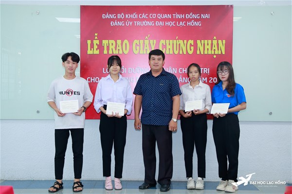 Đ/c Nguyễn Vũ Quỳnh - Đảng ủy viên, Phó Hiệu trưởng trao giấy chứng nhận