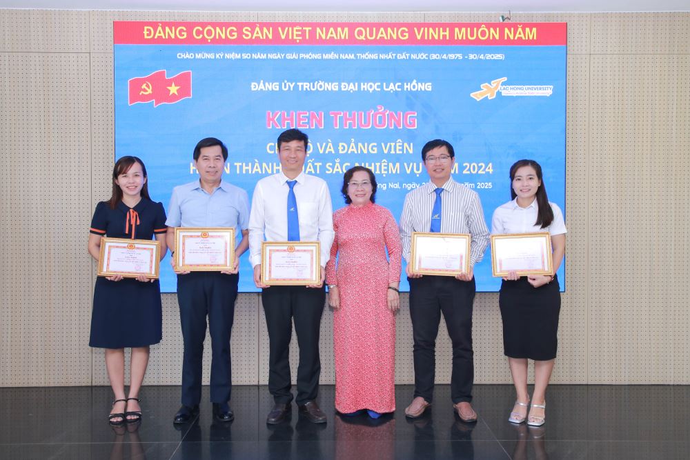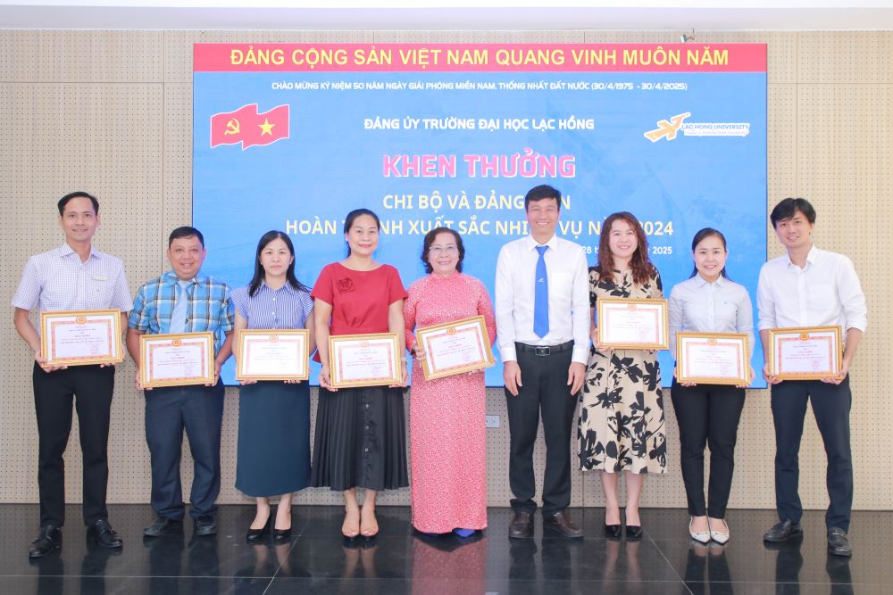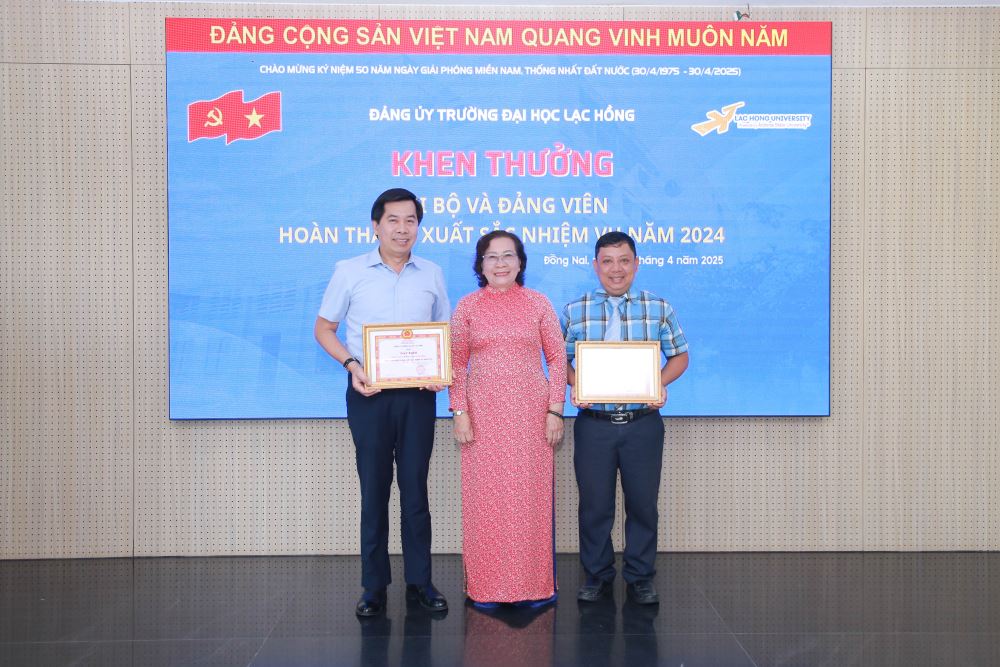 Sáng 28/4/2025 tại Hội trường B203, Cơ sở 1, Đảng ủy Trường Đại học Lạc Hồng đã tổ chức Lễ khen thưởng đối với 03 chi bộ và 22 đảng viên hoàn thành xuất sắc nhiệm vụ năm 2024.