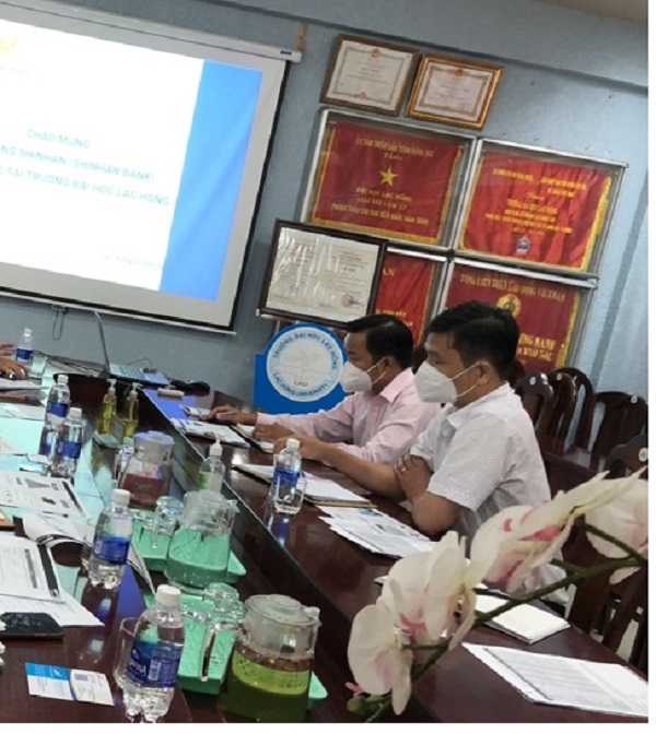 Ngân hàng Shinhan là đơn vị có mối thâm giao nhiều năm với Đại học Lạc Hồng, nay mở rộng phòng giao dịch mới Ban lãnh đạo cũng muốn góp phần chia sẻ khó khăn đối với phụ huynh và sinh viên trong thời kỳ dịch bệnh hiện nay bằng hình thức: Hỗ trợ phụ huynh vay không lãi suất để đóng học phí cho sinh viên sau đó trả góp hàng tháng, ưu đãi này dành cho tất cả sinh viên đang theo học tại Đại học Lạc Hồng nhưng hiện tại đang gặp khó khăn về kinh tế sau đại dịch. Với thủ tục đơn giản: chỉ cần photo chứng minh nhân dân, hộ khẩu và xác nhận đang là sinh viên của Lạc Hồng thì Shinhan Bank sẽ tiến hành hoàn tất thủ tục trong thời gian sớm nhất để giải quyết phần nào âu lo về kinh tế cho phụ huynh, giúp sinh viên yên tâm học tập không bị gián đoạn.