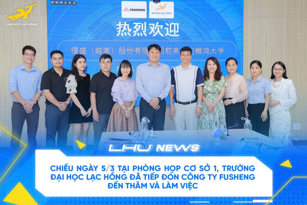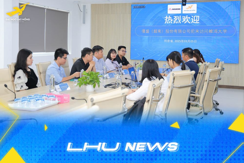 Ngày 05/3/2025 trường Đại học Lạc hồng tiếp đón Công ty TNHH Công nghiệp Fusheng Việt Nam đến thăm và làm việc Về phía Trường Đại học Lạc Hồng có sự tham dự PGS.TS Nguyễn Vũ Quỳnh Phó Hiệu trưởng, TS. Nguyễn Như Quỳnh Trưởng Khoa Dược, TS. Lê Thị Thu Hương trưởng Khoa Khoa học và Công nghệ thực phẩm, Th.S. Huỳnh Thúc Hiếu, Phó Giám đốc Trung tâm Tuyển sinh & Quan hệ công chúng cùng quý Thầy/Cô
