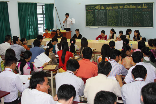 Theo báo cáo từ phòng Đào tạo, kỳ thi tuyển sinh đại học liên thông, hoàn chỉnh, văn bằng hai, tại chức của trường năm nay có hơn 1000 thí sinh đăng ký dự thi. Trường đã giành toàn bộ cơ sở 5 để bố trí các phòng thi tập trung tại một cơ sở, đảm bảo tốt khâu an ninh, nghiêm túc cho kỳ thi. Các công tác chuẩn bị phòng thi, đề thi và công tác tổ chức hội đồng được phòng Đào tạo triển khai và kiểm tra thực hiện tốt. Đúng 6h30 phút sáng tất cả giám thị và các bộ phận được phân công trong kỳ thi tập trung tại phòng hội đồng lắng nghe Ths Lâm Thành Hiển – trưởng điểm thi phổ biến quy chế và lưu ý những yêu cầu của kỳ thi tuyển sinh năm nay.