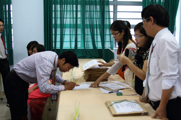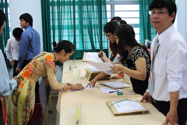 Giám thị ký nhận đề thi tại phòng hội đồng