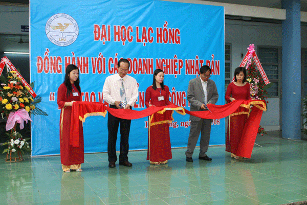 Trước khi bước vào Hội thảo các vị khách mời cùng TS Trần Hành đã khai mạc Triển lãm “Đại học Lạc Hồng đồng hành với các Doanh nghiệp trong đào tạo và sử dụng nguồn nhân lực”. TS Trần Hành – Hiệu trưởng Nhà trường và ông Võ Thanh Lập – Trưởng Ban quản lý các Khu công nghiệp Đồng Nai cắt băng khánh thành hội trợ triển lãm, đồng thời TS Trần Hành cũng tặng hoa cho các đơn vị tham gia triển lãm.