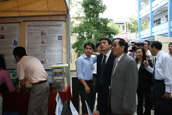 tham quan gian hàng triển lãm của Khoa Công nghệ Thông tin