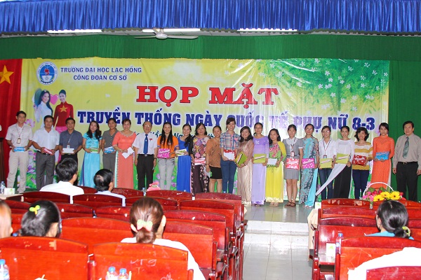 10h30’ ngày 08/03/2013 tại hội trường A.301 trường Đại học Lạc Hồng tổ chức buổi họp mặt chào mừng 103 năm ngày Quốc tế Phụ nữ. Nằm trong chuỗi sự kiện chào mừng trong năm, đồng thời đánh giá, ghi nhận những thành quả và cống hiến của chị em CB,GV,NV trường Đại học Lạc Hồng trong năm vừa qua.