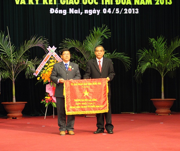 Theo quyết định số 1156/QĐ –UBND về việc Tổng kết và khen thưởng cho các tập thể có thành tích xuất sắc trong phong trào thi đua yêu nước năm 2012. Trường Đại học Lạc Hồng vinh dự nhận được cờ thi đua hạng nhất trong hạng mục cụm, khối thuộc lĩnh vực văn hóa – xã hội với hoạt động giáo dục và đào tạo.