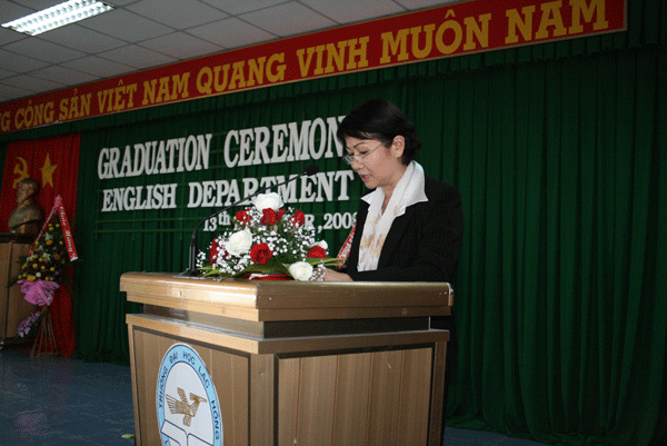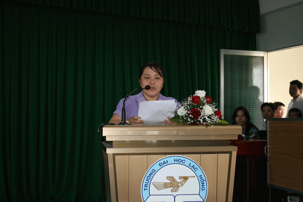 PGS.TS Trần Thị Hồng – Trưởng khoa Ngoại Ngữ trình bày phương hướng hoạt động của Khoa năm học 2008 – 2009. Cô cũng gửi lời cảm ơn sâu sắc đến Hiệu trưởng trường Đại học Lạc Hồng, lãnh đạo nhà trường, đội ngũ cán bộ giáo viên, nhân viên của Khoa đã nhiệt tình giúp đỡ đưa Khoa Ngoại ngữ phát triển ngày càng vững mạnh trong thời gian qua.