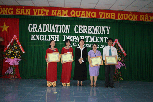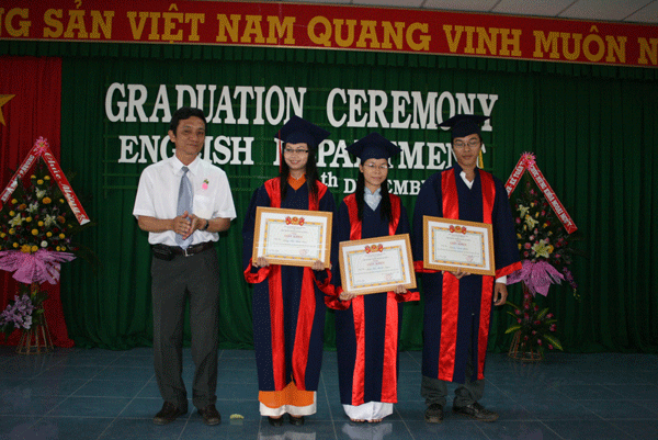 Trong buổi lễ ngày hôm nay Khoa Ngoại ngữ tuyên dương và trao giấy khen cho 130 sinh viên đạt kết quả cao trong học tập, nghiên cứu khoa học năm học 2007 – 2008, phát bằng tốt nghiệp cho sinh viên khóa 7 (niên khóa 2003 – 2007).