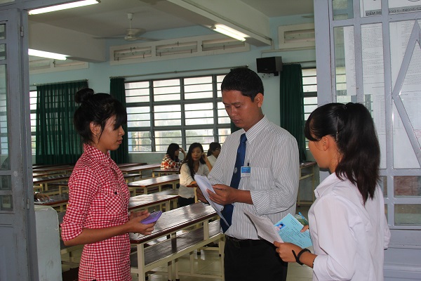 Trong khi cán bộ phòng thi thực hiện bài bản đúng tác phong đã được chỉ đạo và tập huấn trước đó. Đúng thời gian biểu, cán bộ coi thi gọi tên và kiểm tra xác nhận thông tin chính xác của thí sinh. Đồng thời nhắc nhở thí sinh về những hình thức xử lý vi phạm theo quy chế. Bên ngoài khu vực phòng thi, công tác giám sát và thanh tra công tác thanh tra được tăng cường và phối hợp chặt chẽ. Các bộ phận nghiêm túc thực hiện đúng nhiệm vụ.