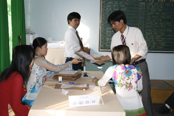 Các thí sinh làm thủ tục vào phòng thi....