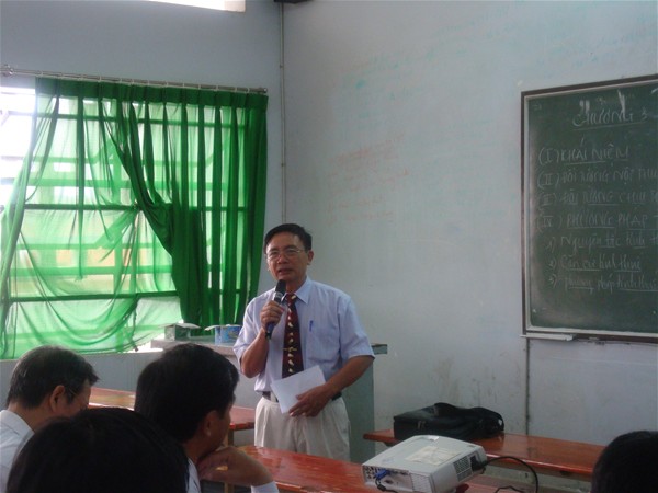 Thầy TS. Nguyễn Ngọc Ẩn ( Người ngồi đầu tiên bên phải) với chuyên đề đầu tiên: Quản lý rủi ro và chất lượng trong Dự Án đầu tư.