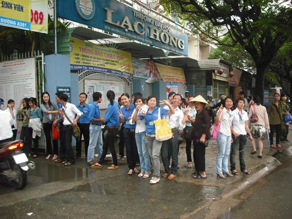 các bạn sinh đang chờ xe để chuẩn bị lên đường