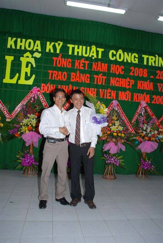 Đặc biệt, tại buổi lễ Thầy PGS.TS Đào Xuân Lộc - Trưởng Khoa Kỹ Thuật Công Trình đã thông qua quyết định thành lập Qũy Khuyến học của Khoa Kỹ Thuật Công Trình và quyết định hỗ trợ học bổng của Qũy Khuyến học Khoa cho 3 sinh viên có hoàn cảnh khó khăn nhưng vượt khó học tốt trong năm vừa qua. Đại diện cho những mạnh thường quân của Khoa năm nay có ông Trần Đình Ngoan ( Nguyên PTGĐ Cty CPTVTKXD – Bộ Xây Dựng và ông Lê Thu Hồ (GĐ Cty TNHH Long Hồ) đã hỗ trợ và trao tặng học bổng Qũy Khuyến học.
