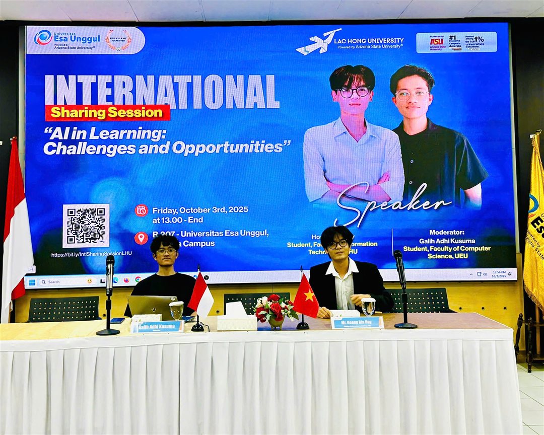 Bản ghi nhớ càng thêm ý nghĩa, khi sinh viên Hoàng Gia Huy (Khoa Công nghệ thông tin) đã vinh dự đại diện cho thế hệ trẻ LHU trình bày tham luận tại Diễn đàn “AI in Learning - Challenges and Opportunities”. Với phong thái tự tin, kiến thức sâu sắc và tư duy sáng tạo, Gia Huy đã mang đến góc nhìn toàn diện về cơ hội và thách thức khi ứng dụng trí tuệ nhân tạo trong giáo dục.