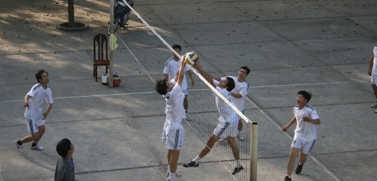 Cầu thủ số 8 (áo xanh) là cựu học sinh trường THPT Nguyễn Trãi - hiện đang học tại khoa thể dục trường Cao Đẳng Sư Phạm Đồng Nai - vừa tham gia thi đấu cùng tuyển Đồng Nai tại giải bóng chuyền toàn quốc.