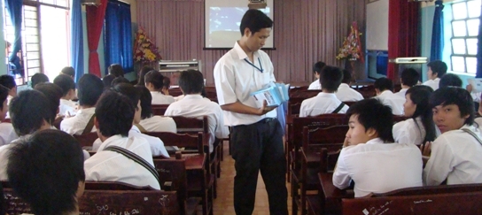 Thầy Trần Bích Sơn cung cấp tài liệu tuyển sinh đến các bạn học sinh trường Trần Quốc Tuấn