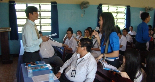 Sau khi làm việc với Ban Giám Hiệu THPT Thống Nhất B, đoàn đã có 20 phút nói chuyện với các em học sinh lớp 12 đang chuẩn bị làm hồ sơ thi đại học, cung cấp cho các em các thông tin về các ngành nghề của đại học Lạc Hồng, để các em có thêm cơ hội lựa chọn được những ngành học phù hợp với khả năng và nguyện vọng.