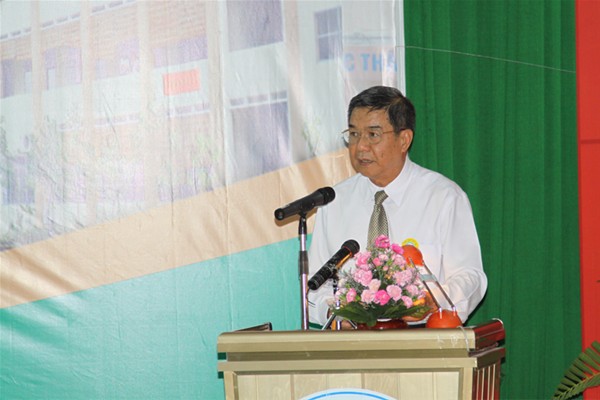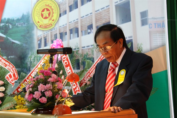 TS Trần Hành - Đang báo cáo thành quả của nhà trường trong 5 năm