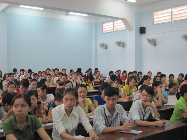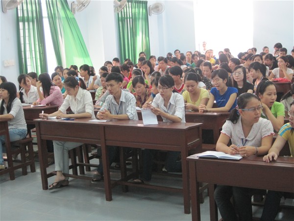 Sinh viên chú ý lắng nghe hướng dẫn của thầy.