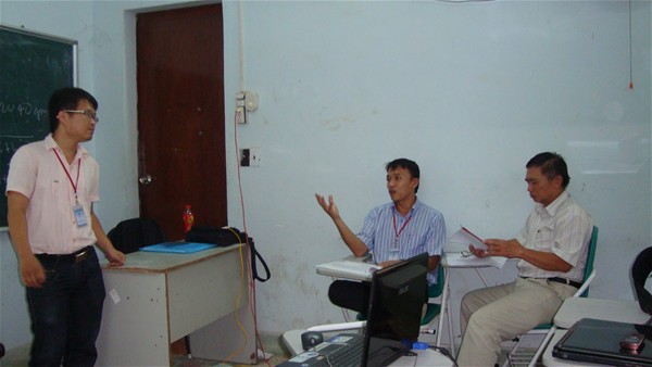Thầy Trưởng và Phó Khoa đóng góp ý kiến cho đề tài của từng giáo viên…