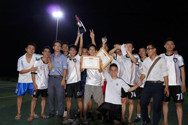 Đ/c Nguyễn Thành Trung bí thư Đoàn Khoa trao giải Nhất và Cúp Vô Địch cho đội 09XC111…