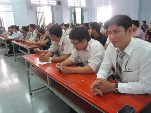Các bạn sinh viên tập trung lắng nghe những phổ biến của các Thầy Cô…