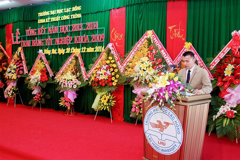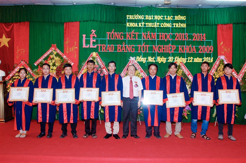 Được sự cho phép của Hội Đồng Quản Trị, Ban Giám Hiệu nhà trường, sáng ngày 20 tháng 12 năm 2014, tại giảng đường A301, Khoa Kỹ thuật Công trình - trường Đại học Lạc Hồng đã long trọng tổ chức lễ tổng kết năm học 2013-2014 và phát bằng tốt nghiệp hệ chính quy, bậc Đại học khóa 2009 cho hơn 250 kỹ sư chuyên ngành Xây dựng Dân dụng – Công nghiệp và Xây dựng Cầu đường. Đây là dịp để thầy và trò trong toàn Khoa nhìn lại một chặng đường đã qua với nhiều thành tựu đáng tự hào, đồng thời đề ra những bước phát triển mới và khen thưởng các thành quả học tập, NCKH của Giảng viên, Sinh viên trong Khoa.