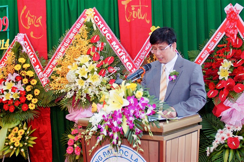Thầy Lâm Thành Hiển thay mặt BGH gửi hoa chúc mừng buổi Lễ